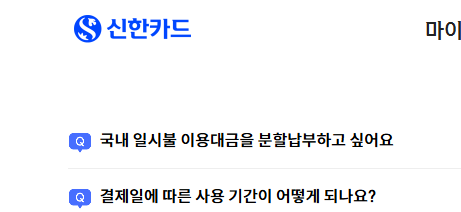 신한카드 홈페이지에서 자주 쓰이는 서비스