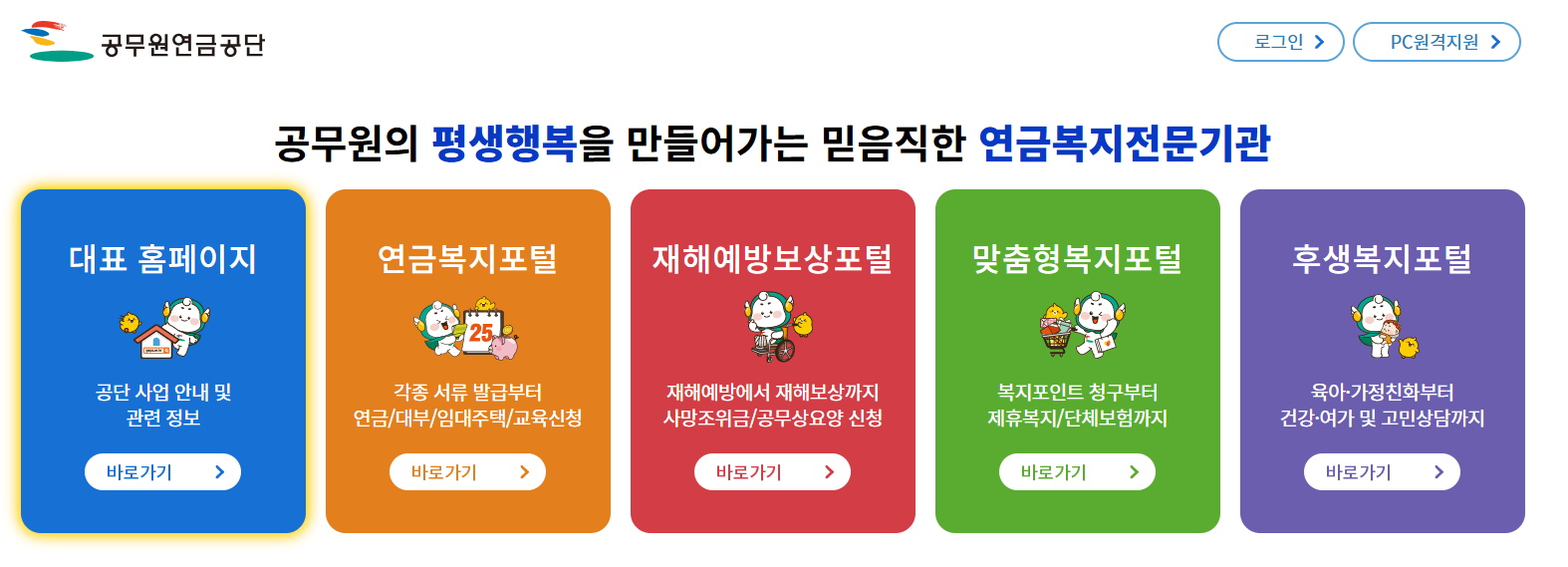 아직 이용해보지 않으셨다면, 오늘 바로 공무원연금관리공단 홈페이지에 접속해 나에게 꼭 맞는 서비스를 확인해보세요!